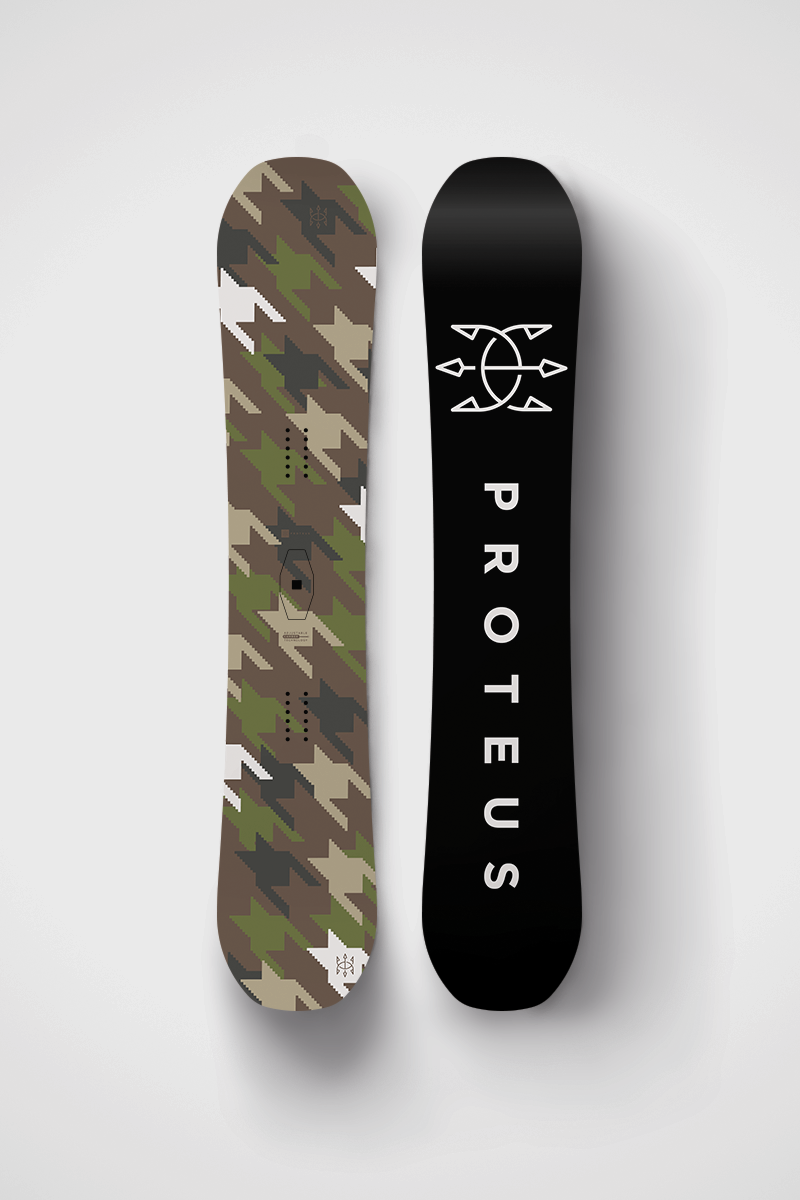 Engineered and developed on the slopes, the patented Proteus Adjustable Camber System provides the ability to alter your board on the fly. Dynamic weather and terrain necessitates a dynamic board.