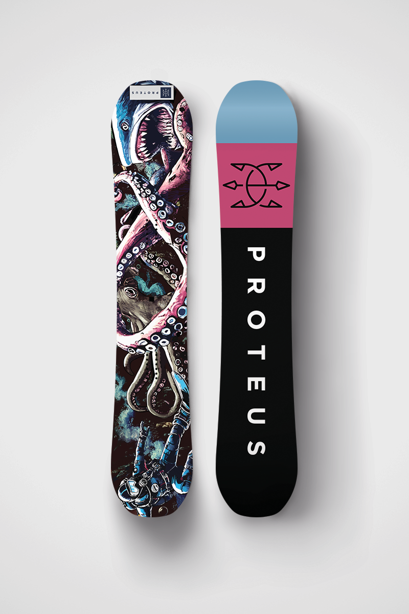 Plunge into the depths. This snowboard embodies the thrill of the unknown, showcasing a fierce underwater showdown between a majestic great white shark and a powerful octopus. Designed for bold riders who thrive on exploration, this board’s captivating artwork reminds you to embrace the challenges of the mountain like a true deep-sea predator.