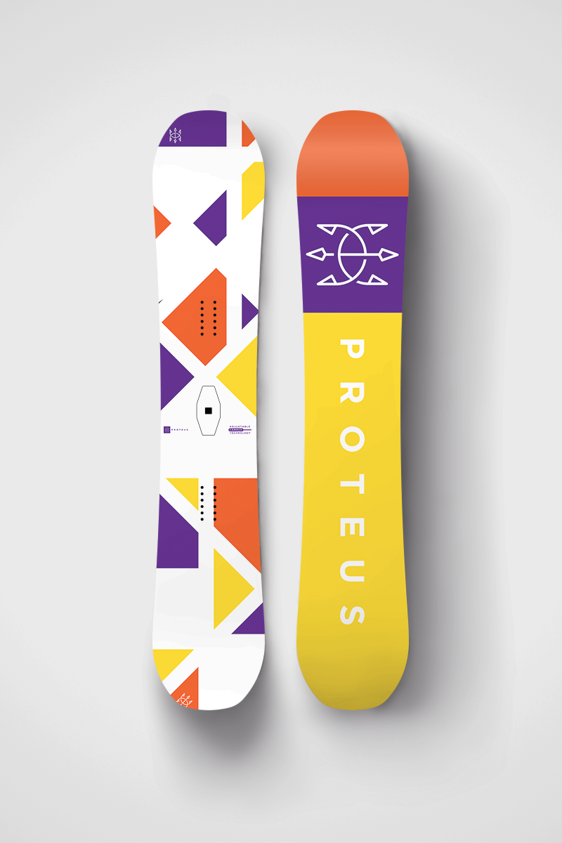 Engineered and developed on the slopes, the patented Proteus Adjustable Camber System provides the ability to alter your board on the fly. Dynamic weather and terrain necessitates a dynamic board.