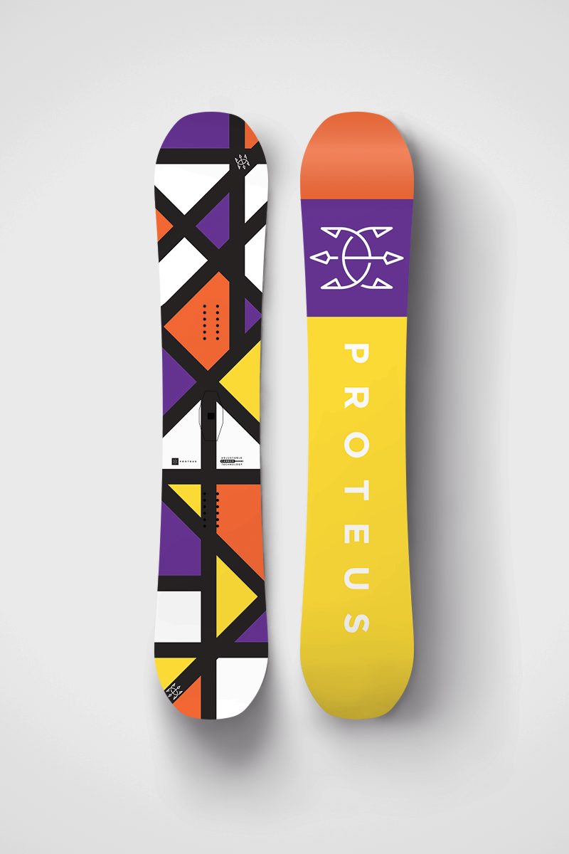 Engineered and developed on the slopes, the patented Proteus Adjustable Camber System provides the ability to alter your board on the fly. Dynamic weather and terrain necessitates a dynamic board.