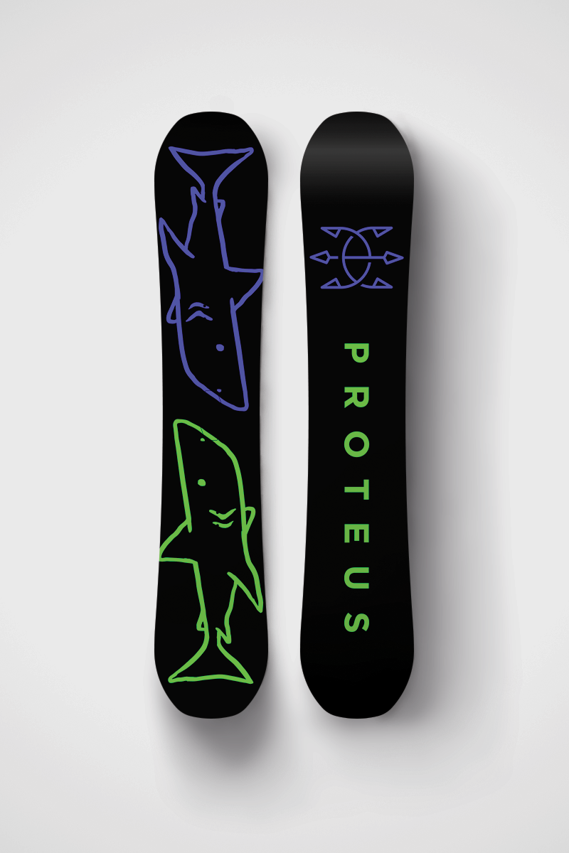 We asked Tyson “Sharknado” Allen to describe his board for us: “I’ve been told I snowboard like a shark, and I love animals, so throwing some on a design seems fitting for a board for me.” – Tyson Allen. Tyson’s signature air game and ability to hunt sick lines make him a standout competitor and an asset for Proteus R&D. Tyson is currently experimenting with boards in the 154-157 and stiffer layups to compliment his competitive riding and all-terrain range.