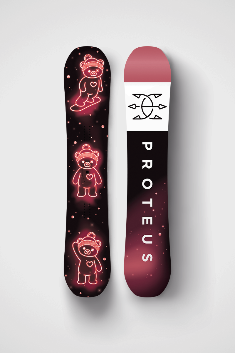 Engineered and developed on the slopes, the patented Proteus Adjustable Camber System provides the ability to alter your board on the fly. Dynamic weather and terrain necessitates a dynamic board.